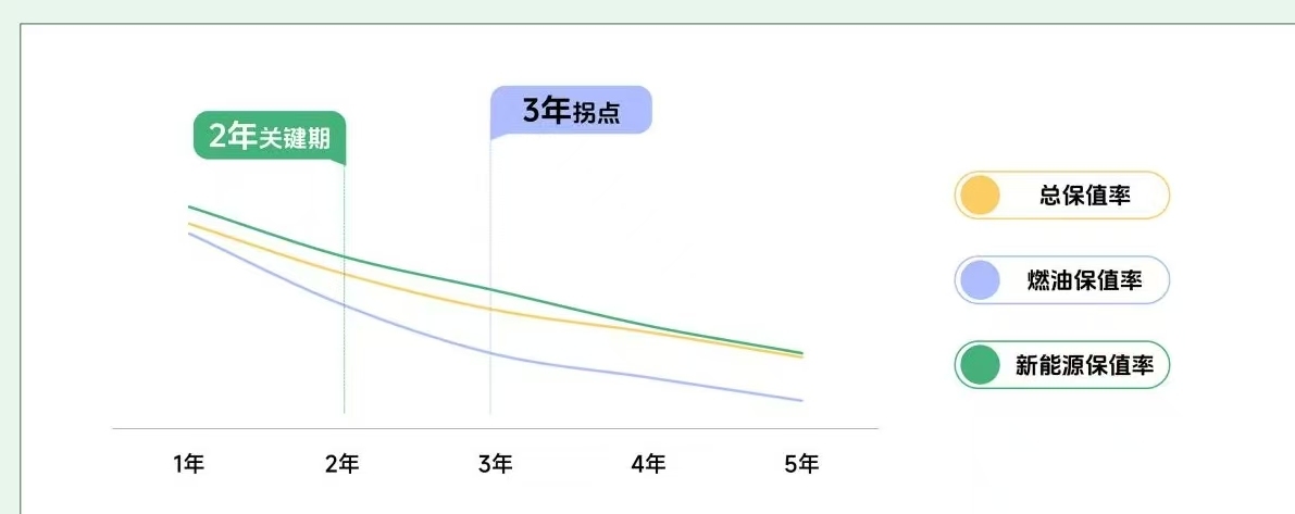 从二手车价钱来看,瓜子方面测算,燃油车第一年的详尽保值率约为66%,折损最为显豁,到第三年时全体价钱折损接近一半。但在三年之后,折损弧线显豁放缓,价钱趋于踏实;而新动力车型的折损节律则更为蚁集,在使用两年支配时,价钱已接近“腰斩”,第三年仍存在约9%的连续折损,但雷同在三年后参加相对随便阶段。