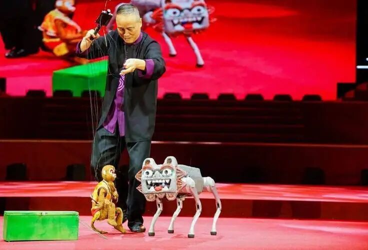 2025世界南戏展演暨第三届海丝泉州戏剧周开幕式上,提线木偶与机器狗同台。尊府图