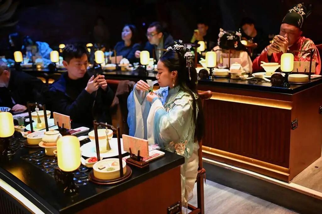 2025年11月2日,北京一家餐厅提供《红楼梦》主题处事,用餐主顾不仅可租出传统衣饰,还能体验千里浸式戏剧。视觉中国丨图