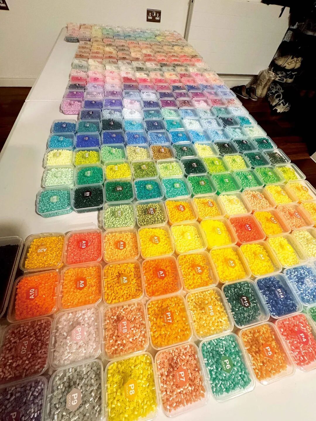 于是,这种星星点点,难度不高的手工“小生意”,迟缓集结成边界,在上游带动了一个弘大的坐褥链条。多样档次的拼豆厂家和品牌运行出现。咫尺,业内公认的国内拼豆“大厂”就包括Mard、黄豆豆等品牌。在品牌Mard的淘宝旗舰店内,1000颗“豆子”的售价为4.41元。为了良好,许多手作店店主会下单购买这样的“好豆”,一次补货就要插足两三千元。