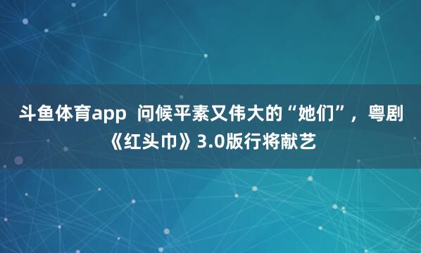 斗鱼体育app 问候平素又伟大的“她们”,粤剧《红头巾》3.0版行将献艺