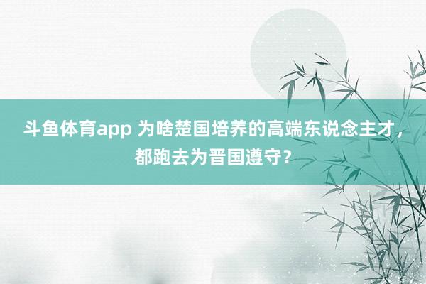 斗鱼体育app 为啥楚国培养的高端东说念主才,都跑去为晋国遵守?