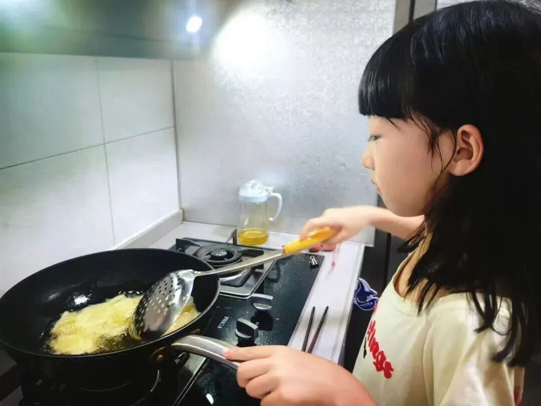 “周三无功课日”东区雍景园小学学子正在为家东说念主制作薯片